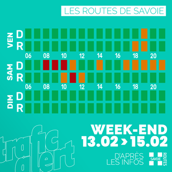 À RETENIR Deuxième week-end de vacances et un trafic concentré sur le samedi aux abords des Alpes en rouge, les effets de la météo possible amplificateur.